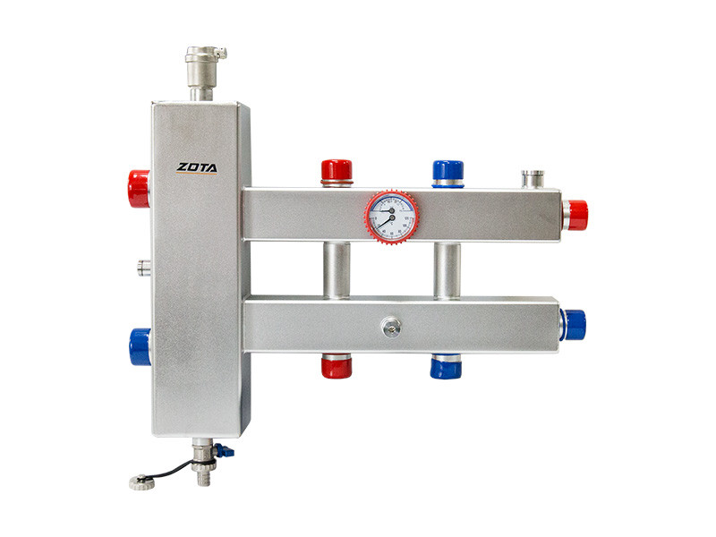 - Гидроразделители с коллекторами - узлы для разветвленных систем отопления с несколькими контурами, оснащенными индивидуальными циркуляционными насосами. Обеспечивают распределение теплоносителя, установление температурного баланса, удаление воздуха из теплоносителя, очистку системы.