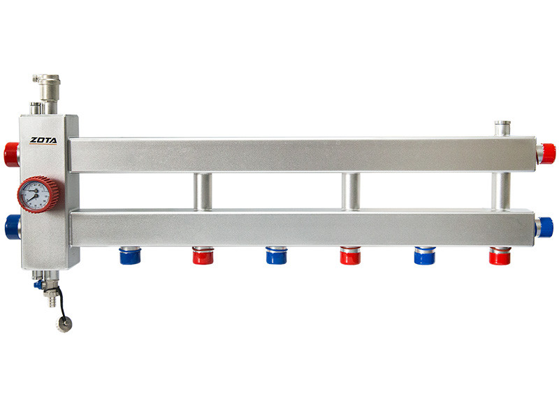 - Гидроразделители с коллекторами - узлы для разветвленных систем отопления с несколькими контурами, оснащенными индивидуальными циркуляционными насосами. Обеспечивают распределение теплоносителя, установление температурного баланса, удаление воздуха из теплоносителя, очистку системы.