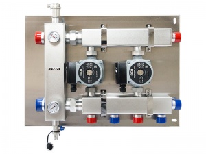 Гидроразделитель нержавеющий с коллектором горизонтальный с 2-мя насосными группами и свободным контуром